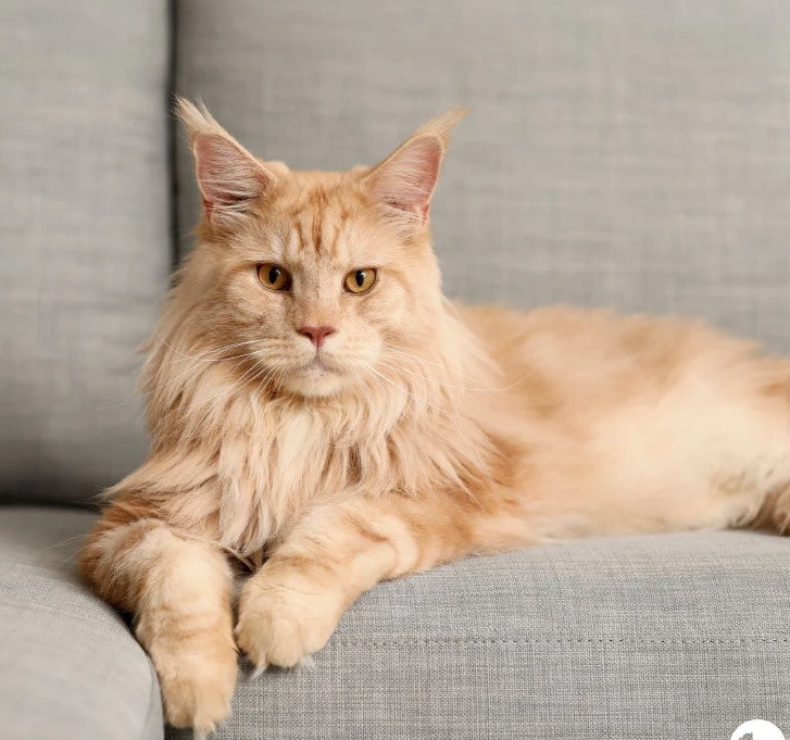 Maine Coon är en elegant katt med kort, silvergråblå päls och smaragdgröna ögon. Den är lugn, intelligent och ofta något skygg mot främlingar.
